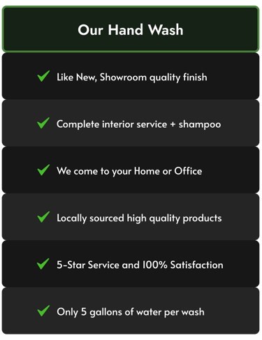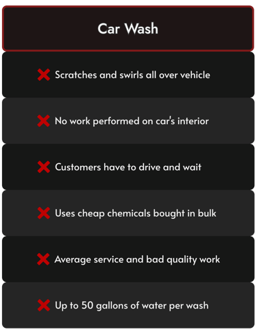 Our quick detailer service makes mobile car detail simple and efficient. We come directly to you, ensuring your car gets the care it truly needs.