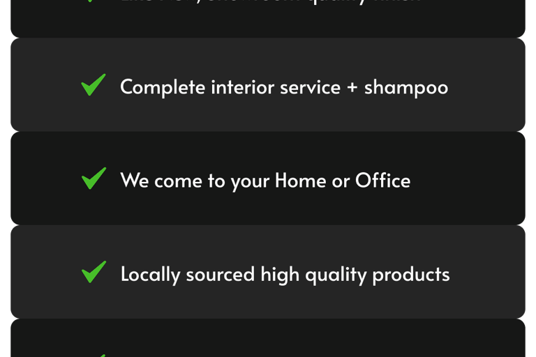 In addition to our main packages, we offer a variety of detailing extras to give your car that perfect finish. From interior steam cleaning to leather care, every service adds a layer of attention your vehicle deserves.