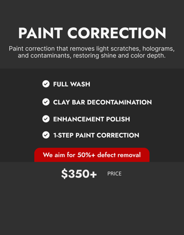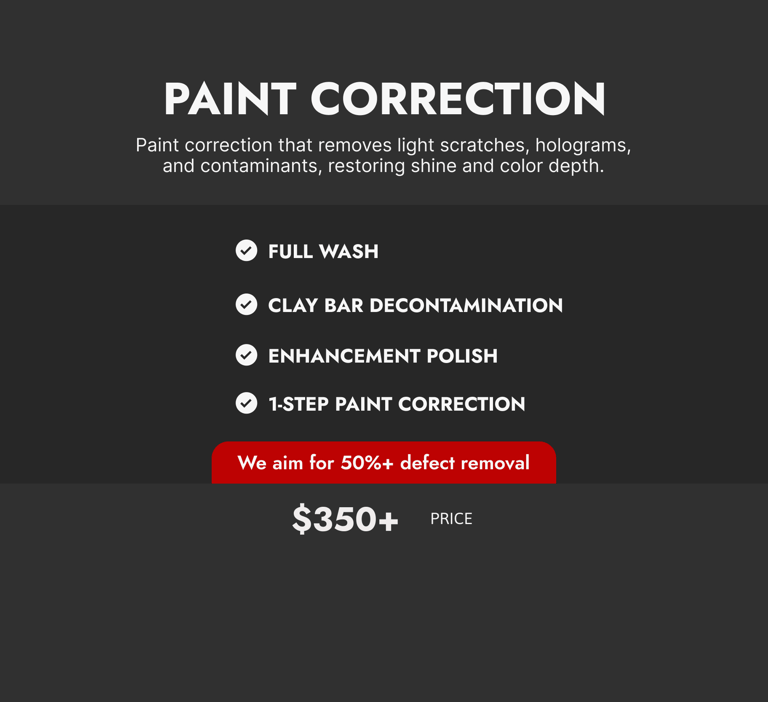 Car detailing prices may vary depending on the condition of your vehicle. Final pricing is subject to change upon visual inspection.