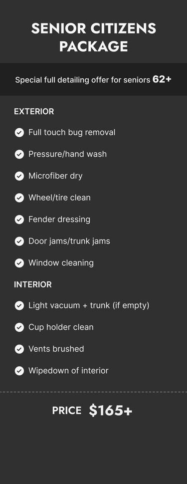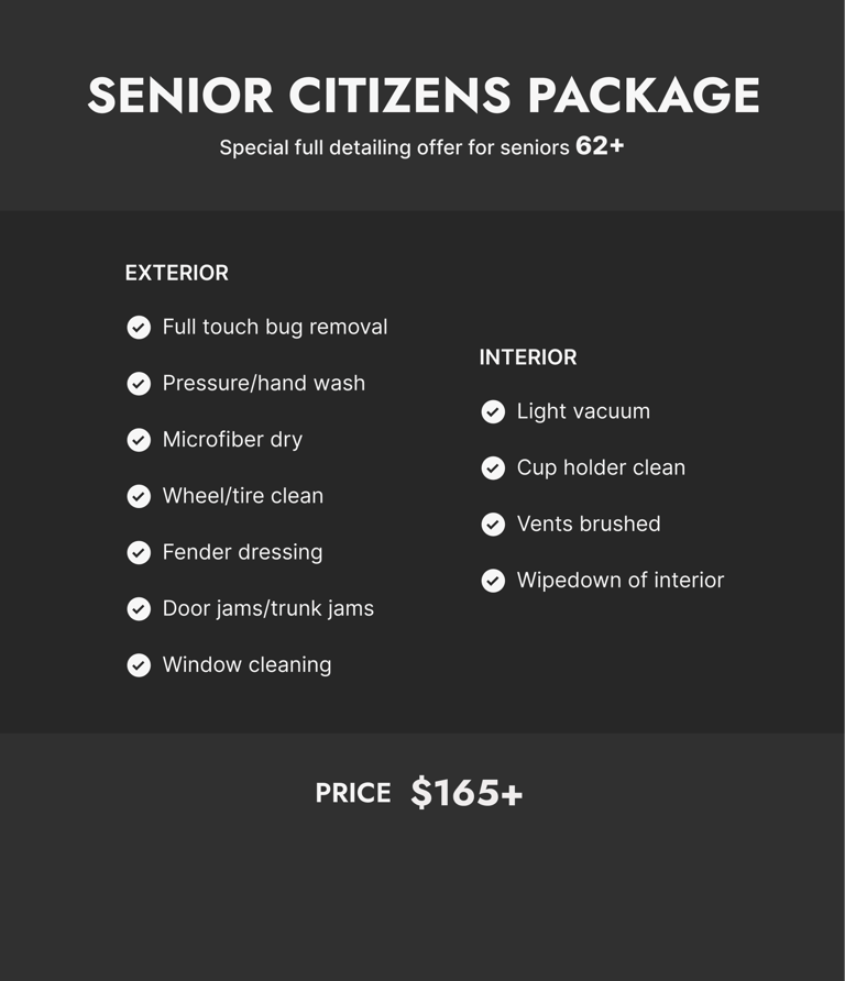 This is a discounted full‑detail option created especially for customers aged 62 and older.